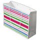 Des rayures de vacances lumineuses ornent ce sac cadeau amusant. Design par l'artiste Becky Volk