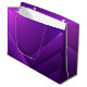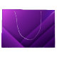 Sac cadeau violet avec poignées blanches et motif géométrique. Le sac est ouvert, montrant son intérieur blanc. Le ton est vibrant et moderne.