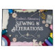 Un sac de magasinage dynamique et attrayant pour les services d'altérations de couture, parfait pour les tailleurs, couturières et créateurs de vêtements personnalisés. Ce sac de conception professionnelle est idéal pour livrer vos modifications de vêtements finis à votre client, qu'il s'agisse de réparation, de couture, de fraisage ou de couture sur mesure. L'avant présente une charmante bordure d'outils de couture (boutons, bobines de fil, broches et balanciers en tissu), sertis contre un arrière - plan gris pour une atmosphère confortable et professionnelle. Ce matériel promotionnel est idéal pour l'utilisation des vêtements de vos clients afin qu'ils se rappellent où ils ont fait réparer ou modifier leurs vêtements.
