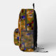 Le collage original de ZoeSPEAK sur ce sac à dos est un motif de camouflage conçu pour les moments où vous voulez être remarqué. La motif de base est faite de formes de camouflage traditionnelles dans les couleurs muettes, les tons terre de teintes brunes, brunes et verdure d'olive. Mais tout au long de ce sont des formes rondes émergent à travers le camouflage en bleu cobalt brillant. Le sac à fermeture éclair sur le sac à dos est conçu comme un sac à embrayage. Le bord du rabat de la poche est décoré de disques vert olive clair avec des points bleus dans leur centre, ressemblant un peu à des paillettes. Le fermoir de la poche est un ovale doré, courbant vers l'extérieur avec un surbrillant au centre. Il y a un monogramme en noir au centre du fermoir. Il est défini pour personnaliser, ou supprimer si vous le souhaitez.