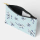 Sac cosmétique bleu et turquoise, parfait pour voyager.
