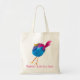 Sac de bibliothèque avec nom personnalisable avec une jolie illustration d'oiseau rose et bleu aquarelle.