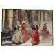 Sac cadeau de Noël représentant une illustration vintage à l'aquarelle d'un paysage urbain enneigé avec des dames victoriennes faisant des achats et profitant de l'agitation de la saison.