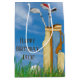 Sac de golf et clubs avec boule blanche dans l'herbe sur le ciel arrière - plan pour anniversaire Nom peut être customisé