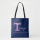 Le sac assez tiré par la main de nom et de signification de monogramme de T conçoivent. Idéal pour un cadeau personnalisé pour une fille qui a un début nommé avec le T. Cet exemple lit la beauté royale de Tanya A, frappant, provoquant et mystique ou vous peuvent customiser le texte avec votre propre nom et de signification les mots s'il y a lieu. La couleur d'arrière - plan actuellement bleu-foncé mais vous peut également changer ceci en votre propre choix de couleur s'il y a lieu. Idéal comme cadeau spécial d'anniversaire ou de célébration. Si vous avez besoin de l'aide avec votre propre nom personnalisé svp contactez-moi. Coeurs typographiques de la majuscule T et fleurs dessinant et conversion graphique aux nuances de texte et de conception uniques lumineux d'art de © rose et pourpre par Sarah Trett. www.sarahtrett.com pour www.mylittleeden.com