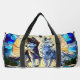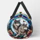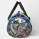 Deux différentes images de loups sont faites dans un look de vitrail pour faire ce sac attrayant.