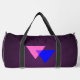 Duffle Bag with pink and blue triangles bisexuality symbol, on purple background