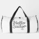 Ce sac cabine blanc présente la phrase « Hello Sailor » dans une police de style corde charmante, accompagnée d'un petit graphique d'ancre. Ce design sur le thème marin est parfait pour ceux qui aiment la mer, la voile ou une esthétique maritime classique. Modifiez la couleur des casquettes et du corps du sac dans l'outil de conception selon vos couleurs préférées.