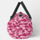 Ce sac à dos en camo girly Duffel présente un motif camouflage dans les tons rose foncé et rose pâle.