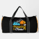 This black duffle bag is perfect for any camping enthusiast, featuring a charming design of a camper van parked next to a tent and a crackling campfire, with mountains in the background. The bold text "Camping Crew" makes it an ideal accessory for your next outdoor adventure or road trip. Edit color of the bag caps and body in the Design tool to your favored colors.