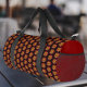 Voyagez ou dirigez-vous vers le gymnase en style avec ce petit sac à duffle qui présente l'image d'une colarette rouge fleur Dahlia imprimée dans un motif extensible sur un arrière - plan noir, ainsi que des garnitures solides et rouges sur les extrémités du sac. Un design floral et amusant !