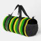 Drapeau jamaïcain couleur jaune, noir et vert rayé sac duffel, avec un texte monogramme personnalisable à une extrémité pour vous d'ajouter vos propres initiales, nom ou message