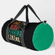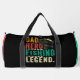 This black duffle bag celebrates the ultimate fishing dad with a bold, colorful graphic. It features a large, detailed bass fish above the text "DAD HERO FISHING LEGEND." This bag is perfect for holding fishing gear, gym clothes, or as a thoughtful gift for any father who loves to cast a line. Edit color of the bag caps and body in the Design tool to your favored colors.