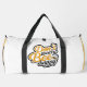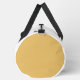 This cheerful white and yellow duffle bag features an adorable bee and the uplifting message "Don't Worry Bee Happy" in playful yellow and orange script. It's a fun and positive accessory to brighten anyone's day, whether they're off to the gym, traveling, or just need a smile. This bag embodies a lighthearted and optimistic spirit. Edit color of the bag caps and body in the Design tool to your favored colors.