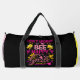 This vibrant black pink and yellow duffle bag features the uplifting message "DON'T WORRY BEE HAPPY SMILE" with cheerful bees and colorful accents. It’s a delightful accessory designed to spread positivity and brighten any day. Perfect for gym trips, travel, or as a thoughtful gift for someone who needs a reminder to stay optimistic. Edit color of the bag caps and body in the Design tool to your favored colors.