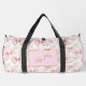 Joli Coquette design d'arc personnalisé Grand sac Duffle. Dispose d'un motif arc rose blanc, avec espace pour ajouter un nom et/ou un message entouré d'un cadre parties scintillant or.