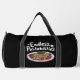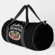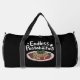 This black duffle bag features a playful graphic of a pasta dish with tomatoes and basil, accompanied by the punny text "Endless Pastabilities." This fun design is perfect for foodies, chefs, or anyone who loves Italian cuisine. Edit color of the bag caps and body in the Design tool to your favored colors.