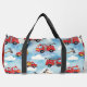 This duffle bag features a charming pattern of red fire trucks, fire hoses, and axes, set against a bright blue sky filled with fluffy white clouds. A side pocket, adorned with a red fire department emblem, is personalized with "FIRE RESCUE," "JENNY SAMSMITH," "FIRE DEPARTMENT," and "Vancouver B.C.," making it a thoughtful gift for a firefighter. Personalize with your name and department home town and more. monogram