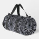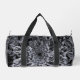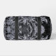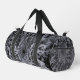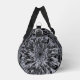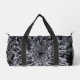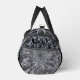 Ces petits sacs Duffel sont dotés d'une fleur Dahlia noire et grise aux accents blancs.