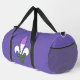 Duffle Bag with fleur-de-lis (fleur-de-lys or lily flower) symbol with rainbow stripes of purple, white and green from genderqueer flag; genderqueer pride design