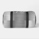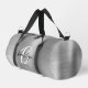 Ce sac en duffel personnalisé est doté d'un monogramme et d'un prénom en écriture moderne noir et blanc sur un arrière - plan en métal brossé en argent glam.
