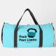 The Promotional Gym Motto Push Past Limits Electric-Blue Black Duffle Bag with a kettlebell symbol is part of the "Electric Blue Fitness Business Cards & Marketing" collection. With your fitness studio name the duffle bag makes a great sports event raffle prize giveaway or studio merchandise. Customize it with your gym name. All elements can be color customized.