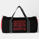 This powerful design features the text "HEROES WEAR HELMETS AND BOOTS" in bold red lettering, with subtle icons of a helmet and a boot. It's a strong statement honoring firefighters, military personnel, and other brave individuals who serve and protect. Perfect for showing appreciation to real-life heroes.