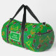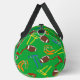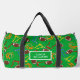 Montrez un peu d'amour à votre entraîneur favori de football du drapeau ou créez un cadeau personnalisé utile pour les joueurs de football du drapeau. Ce sac en duffel a un motif de footballs et ceintures de drapeau colorées contre un arrière - plan vert herbe avec une tache à l'avant pour ajouter un nom ou un autre texte personnalisé.