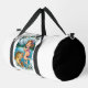 A happy girl jumps in the air, holding a fish. Her expression is filled with joy as she playfully interacts with her aquatic companion.