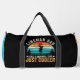 This striking black duffle bag celebrates the everyday hero, the lineman dad, with a bold graphic. It features a lineman silhouette on a power pole against a beautiful striped sunset. The text "LINEMAN DAD ★ LIKE A NORMAL DAD ★ JUST COOLER" makes a proud statement. Perfect for utility workers or as a thoughtful gift for Father's Day. Edit color of the bag caps and body in the Design tool to your favored colors.