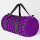 Pour ceux qui aiment la couleur pourpre ! Voyagez ou dirigez-vous vers le gymnase avec ce grand sac en duffle qui présente l'image d'une petite fleur violette de Cranesbill Geranium imprimée dans un motif extensible sur un arrière - plan noir avec un garnissage solide et violet sur les extrémités du sac. Un design floral et amusant !