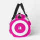 Hot Rose White Stripes Monogram Duffle Bag, Faites une déclaration avec ce chic duffle sac avec des rayures chaudes rose et blanc, typographie moderne, et un panneau latéral dans violet profond. Ajoutez votre monogramme ou vos initiales au sac et faites-le vous-même. Ce sac de deux dimensions (petit et grand) est parfait pour la salle de fitness, un week-end ou une sortie à la plage.