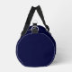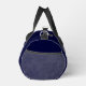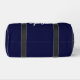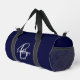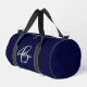 Ce sac en duffel personnalisé est doté d'un monogramme et d'un prénom en écriture moderne gris et blanc sur un arrière - plan bleu marine élégant.
