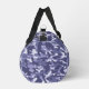 Ce sac est doté d'un charmant motif de style camo dans les tons bleu, gris bleu et blanc cassé. Votre monogramme à trois lettres est en blanc dans une bannière de cercle bleu correspondant au centre.