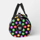 Sac à duffel coloré du joueur de billard à motifs ballons de piscine sur le noir. Il y a une zone de monogramme à une extrémité pour ajouter votre propre initiale
