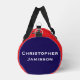 Ce sac d'équipement de duffel est un cadeau unique et amusant pour un joueur de sport, une équipe ou un entraîneur, ou pour apporter votre équipement à la salle de sport! 250e anniversaire de 1776 à 2026, conception patriotique des Etats-Unis d'Amérique à l'avant, à l'arrière et à une extrémité. L'autre extrémité a un nom personnalisé. Un grand jalon pour les USA ! Photo de drapeaux américains agitant dans le vent, et texte patriotique en font un merveilleux souvenir commémoratif - un événement unique dans une vie ! Un magnifique cadeau pour la fête de l'Indépendance, 4 juillet, le Jour du Souvenir, le pique-nique de la Fête des Anciens Combattants ou le barbecue. Tous droits réservés © 2025 Alan & Marcia Socolik.