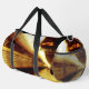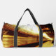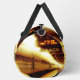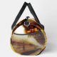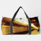 Sur la photo originale de ZoeSPEAK (avec la date, 2014, sur la photo) sur ce Duffel Bag, les passagers au loin débarquent du train arrêté sur la voie 2. La lumière du soleil frappe le sommet du train métallique brillant, et un panneau avec la date et l'heure peut être vu suspendu sous le toit de la plate-forme, avec le reste du train et la plate-forme à l'ombre. Les oeuvres d'art ont été réalisées dans les tons or.