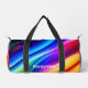 Les couleurs arc-en-ciel de violet, bleu, vert, jaune et rouge créent de belles vagues sur ce sac en duffel. Personnalisez avec votre nom en lettres contrastées et en caractères gras.