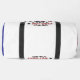 This fun white duffle bag features a patriotic skeleton, complete with a bandana and bow tie, holding a hot dog and a cold drink. Surrounded by red, white, and blue stars, the humorous text "SERVING LOOKS & HOT-DOGS -IN THAT ORDER-" is prominently displayed. Perfect for summer events or anyone with a quirky sense of humor. Edit color of the bag caps and body in the Design tool to your favored colors.