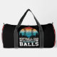 This humorous design features a softball with a retro sunset and pine trees, accompanied by the bold text "SOFTBALL DAD LIKE A BASEBALL DAD BUT WITH BIGGER BALLS." It's a witty and playful statement for fathers who love softball, celebrating the sport with a cheeky, memorable punchline.