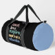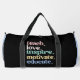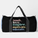 This black and blue duffle bag celebrates the multifaceted role of an educator, featuring the powerful words "teach. love. inspire. motivate. educate." in a charming, multi-colored font. It's an ideal and inspiring gift for teachers, mentors, and anyone dedicated to shaping minds and hearts. Edit color of the bag caps and body in the Design tool to your favored colors.