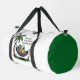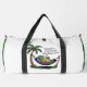 This white duffle bag features a charming cartoon of a relaxed turtle napping in a hammock strung between two palm trees, reading a book. The text reads, "Speed is overrated, nap time isn't." This humorous design is perfect for those who prioritize relaxation and a slower pace of life. Edit color of the bag caps and body in the Design tool to your favored colors.