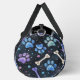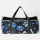 This stylish duffel bag features a vibrant purple and blue colorful design adorned with contrasting paw print patterns. It's a functional gear bag and travel accessory, perfect for any pet lover on the go.