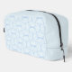Découvrez notre élégant sac de toilettes avec un motif géométrique épuré aux lignes courbes bleu clair et aux formes pétales contre un arrière - plan pâle et presque blanc. Parfait pour organiser vos essentiels avec élégance et design moderne.