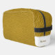 Découvrez notre élégant sac d'articles de toilette fabriqué à partir de cuir de galets jaune or éclatant. Doté d'une surface texturée et granuleuse avec des bosses et des fossettes uniformément distribuées, cet accessoire durable et attrayant offre à la fois élégance et fonctionnalité pour vos besoins de voyage.