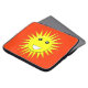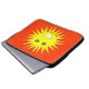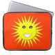 Ce superbe sac pour ordinateur portable est doté d'un soleil jaune vif et souriant qui vous fera sourire même les jours les plus misérables. Il est sur un arrière - plan chaud-rouge et a une grande bouche blanche souriante et d'énormes yeux noirs avec des élèves blancs.