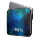 Un coque portable personnalisé avec un arrière - plan d'espace bleu. Ajoutez votre propre nom à ce produit en utilisant le modèle personnalisé.