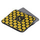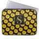Un motif de tournesols jaune vif sur arrière - plan noir avec un monogramme noir et or.