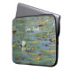 Aquarelle à fleurs du lac Watelily, Manche pour ordinateur portable. Art numérique. L'une des deux collections d'art de nénuphars et de caleçons, dans le style de Claude Monet. Une fleur blanche entourée de coussins de nénuphars de différentes teintes vertes. Modifiez en votre nom ou supprimez-le entièrement.