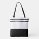 Le sac fourre-tout est présenté dans un style bicolore dans les couleurs noir et blanc. Customisez ce fourre-tout et ajoutez plus ou achetez tel quel. La taille moyenne est affichée, vous pouvez choisir une autre taille et un autre style si vous le souhaitez.